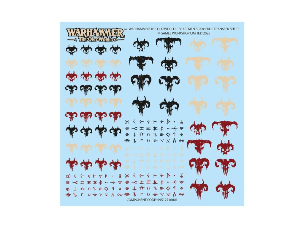 Tato stavebnice obsahuje 80 plastových komponentů, 3 čtvercové podstavce Citadel 50 mm a 1 transferový list s motivem Beastmen Brayherds, který obsahuje 204 vysoce kvalitních transferových listů s motivy tobogánů pro úpravu vašich miniatur.