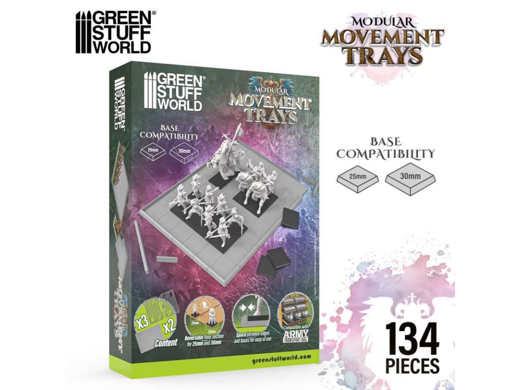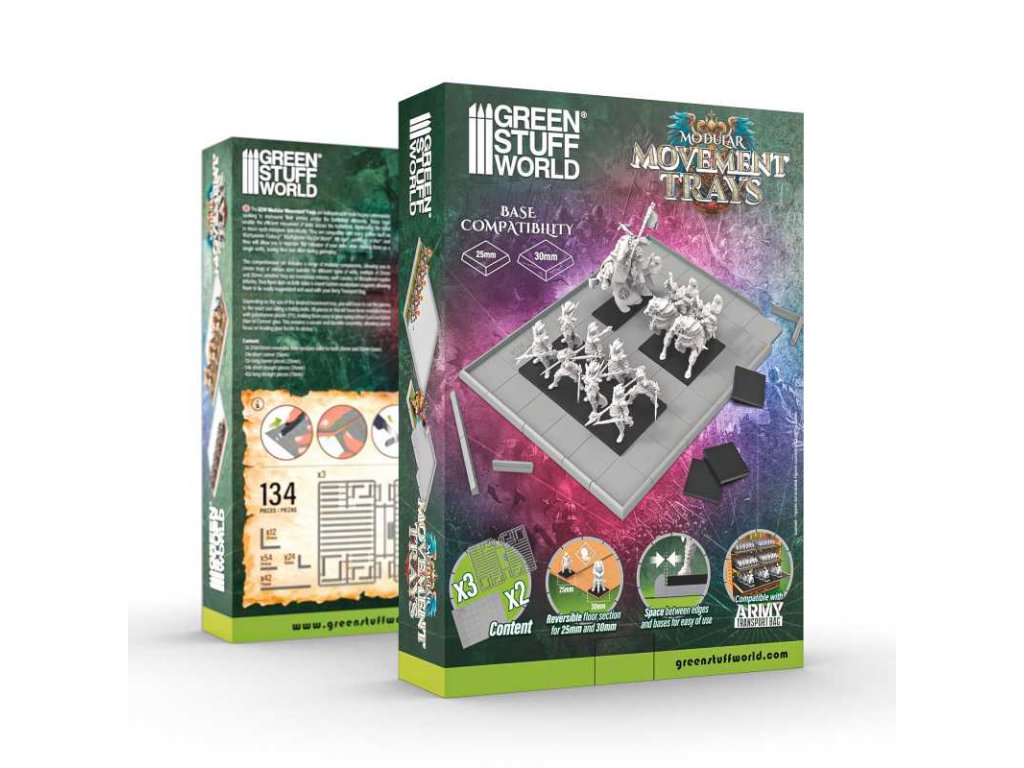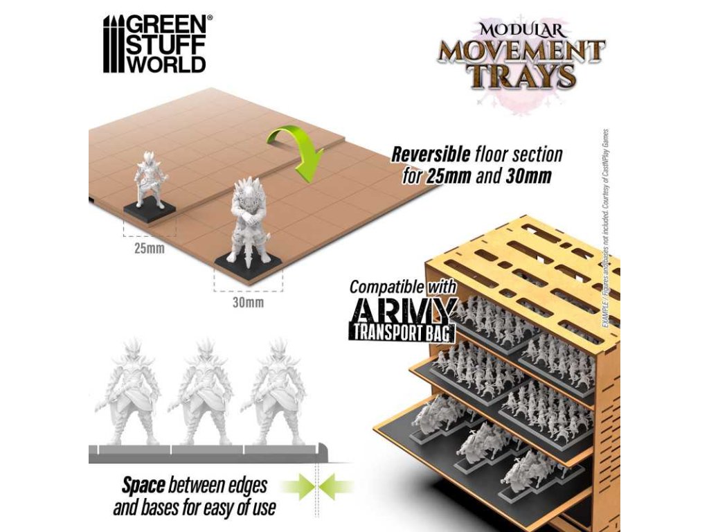 Tato komplexní sada obsahuje řadu modulárních komponentů, které vám umožňují vytvářet tácy různých velikostí vhodných pro různé typy jednotek, násobky 25 mm a 30 mm, ať už se jedná o monstrózní pěchotu, rychlou jízdu nebo disciplinovanou pravidelnou pěchotu. Lze je snadno zmagnetizovat pomocí magnetických plechů a gumových ocelových plechů, což umožňuje jejich snadnou zmagnetizaci a použití s vaším kufříkem na miniatury: Army Transport Bag.