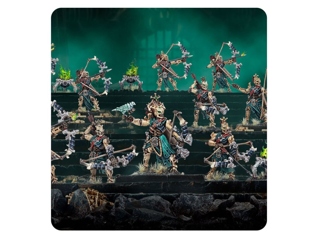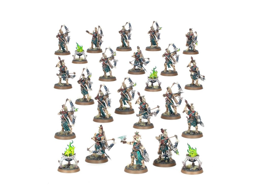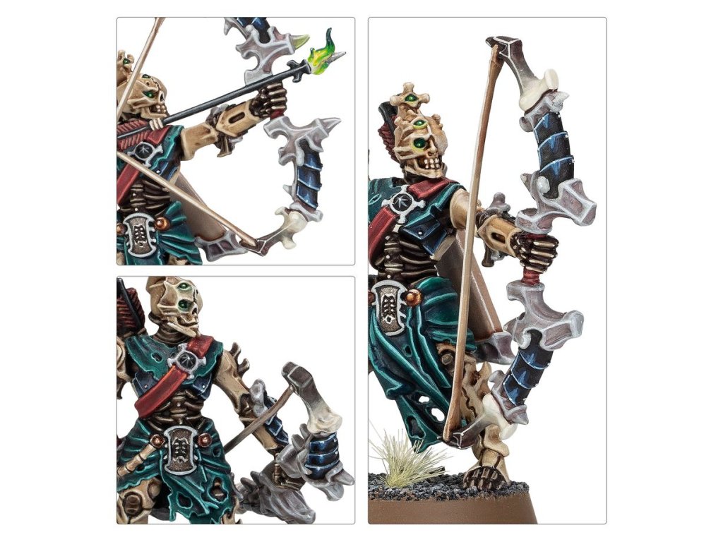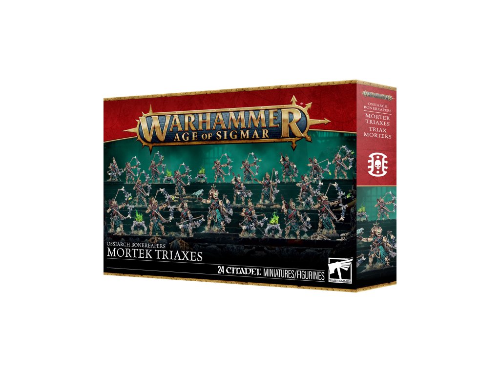 This multipart plastic kit builds 20 Mortek Triaxes and four Balefire Braziers for your Ossiarch Bonereapers armies in games of Warhammer Age of Sigmar. These macabre archers are ready to rain flaming death upon their opponents, softening up targets while the rest of your army advances. The kit includes parts to build up to two optional champions, each in one of two different poses. There are also 20 interchangeable heads, 16 interchangeable quivers, and 4 interchangeable flames for the braziers, making it easy to customise your ranged infantry.