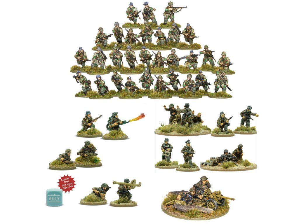 Tento balíček vám poskytne vše, co potřebujete k boji proti fanatickým výsadkovým jednotkám SS, které zahájily odvážnou, i když nakonec ztracenou operaci Rösselsprung. Navazuje na unikátní systém výběru sil v kompendiu Bolt Action Compendium, který umožňuje SS Fallschirmjägerům zařadit do své čety těžké zbraně, plamenometné družstvo a dokonce i lehké protitankové dělo spolu s pěchotou. Pravidla pro nasazení modelů v operaci Rösselsprung naleznete v kompendiu Bolt Action Compendium.
