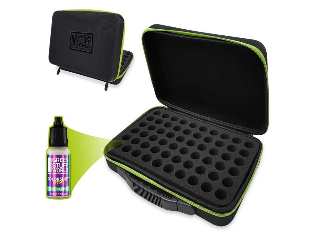 Pouzdro na barvy Green Stuff World je robustní kufr s pevným krytem, speciálně navržené pro přepravu a ochranu 17ml kapátek. Je lehké a zároveň odolné, takže je ideální pro bezpečné přenášení barev kdekoli.