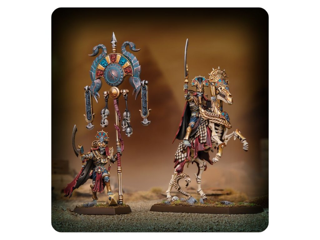 Tato vícedílná plastová stavebnice umožňuje sestavit dva královské heroldy – jednoho pěšky a jednoho na kostlivém oři s bardy – silné šampiony pro vaše armády Králů hrobek Khemri ve hrách Warhammer: The Old World. Obě miniatury lze použít k znázornění královského herolda, prince hrobek nebo krále hrobek. Tyto makabrózní miniatury jsou ideální pro posílení vaší armády a samy o sobě jsou mocnými válečníky.