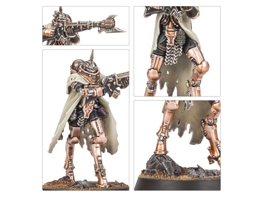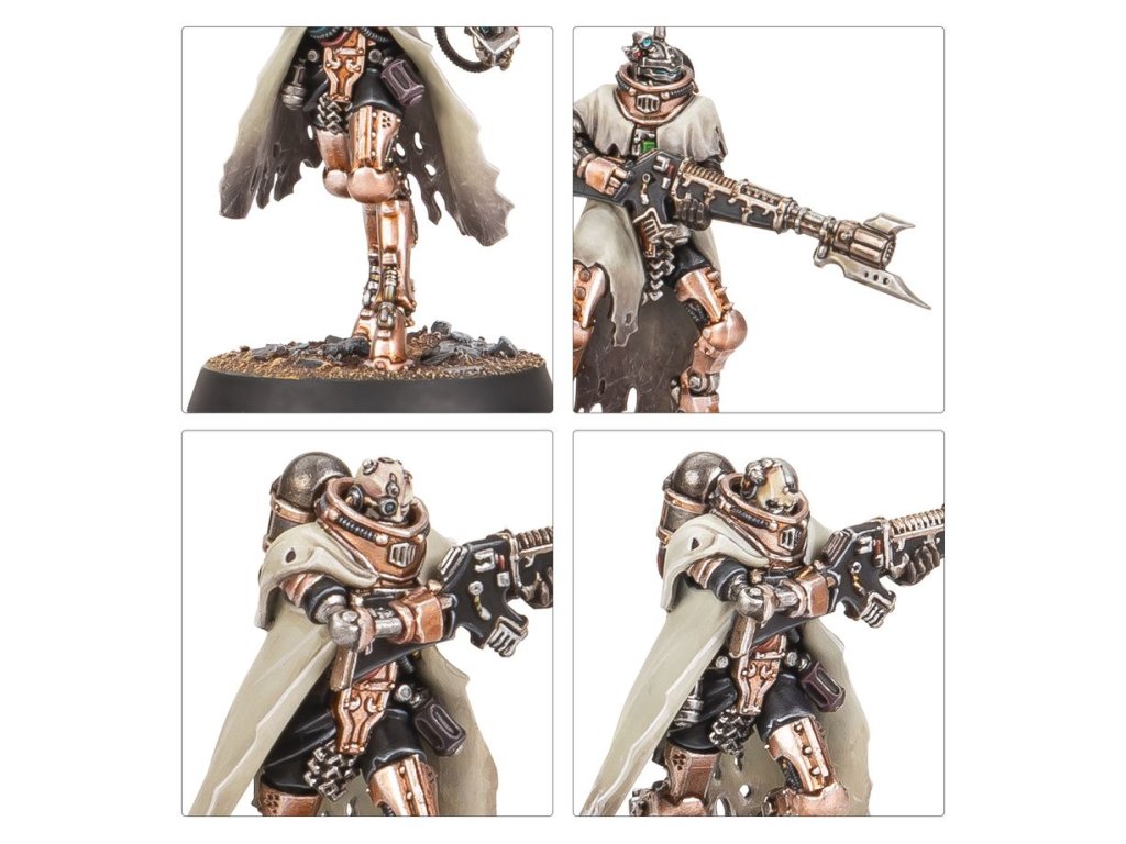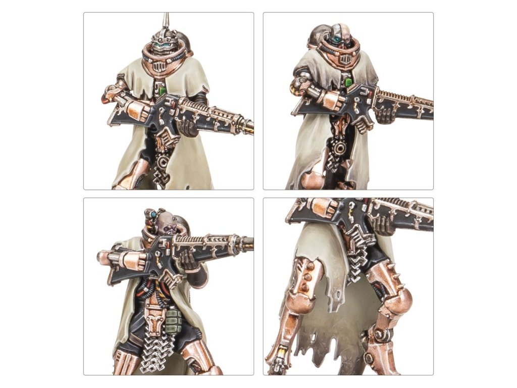 The Skitarii Battle-Pilgryms are bound together as conclaves, and each of these war formations is led by an ordinator, an individual through which the will of the marshal is conducted. They are singularly focused on the defence of the domains of the Omnissiah and the acquisition of lost technology, to prevent it from falling into the hands of the unworthy.