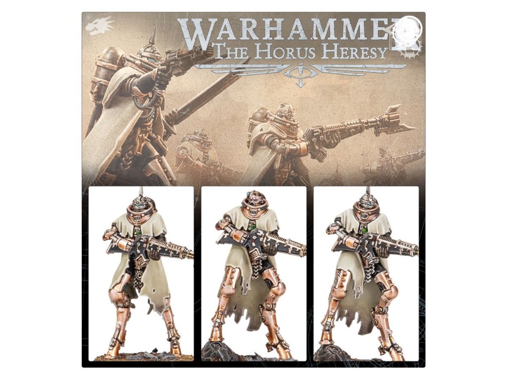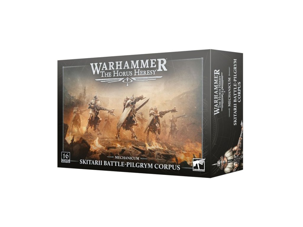 This multipart plastic kit builds 16 Skitarii Battle-Pilgryms, fast infantry for your Skitarii Conclave armies in games of Warhammer: The Horus Heresy. Each equipped with a voltlock arquebus, they are prepared to take on even the toughest enemy infantry. Their augmentations and armour make them difficult to kill, resulting in a tough, hard-hitting unit.