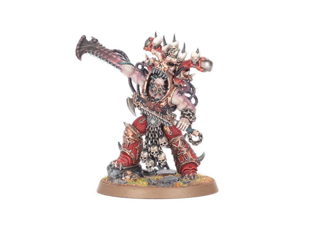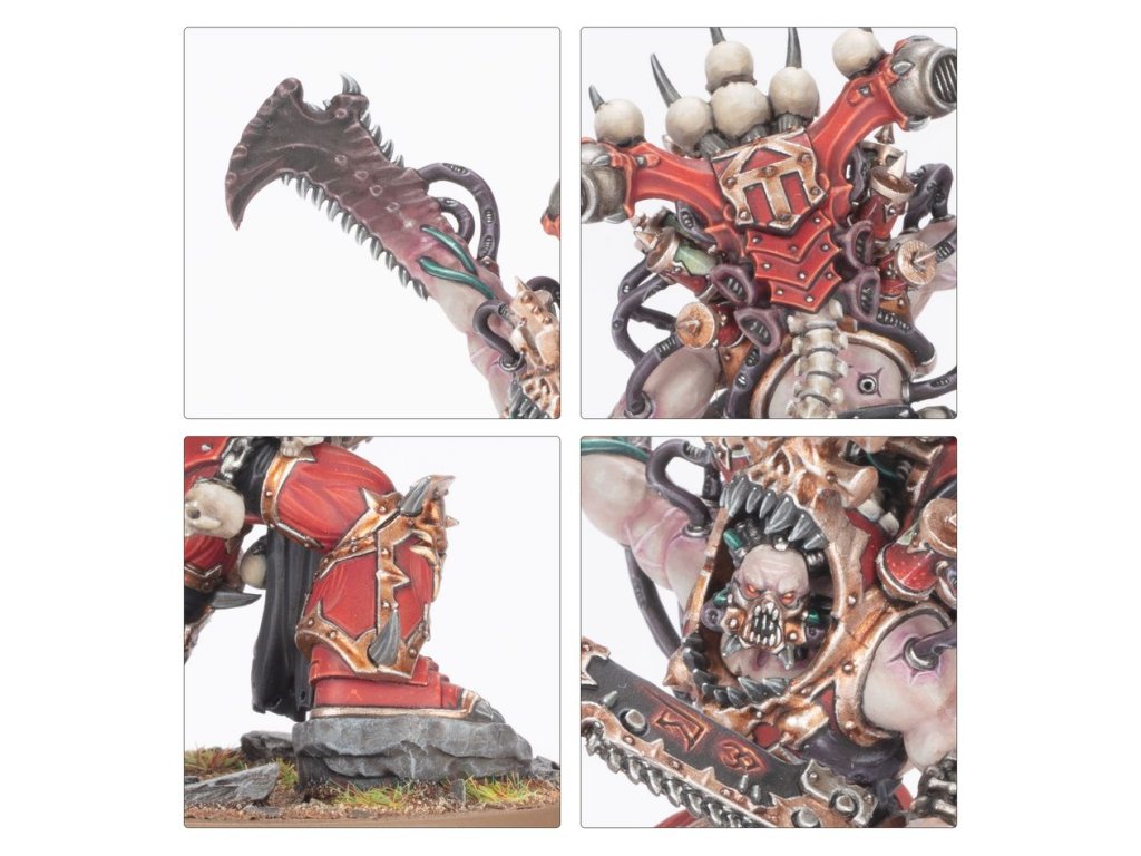 The Slaughterbound share their forms with the possessing spirit of a Bloodthirster. Such an infernal fusion lends the host colossal strength and insatiable rage, driving them to reckless butchery. Containing such power requires a great force of will, however, and the demise of such a warrior is often explosive.