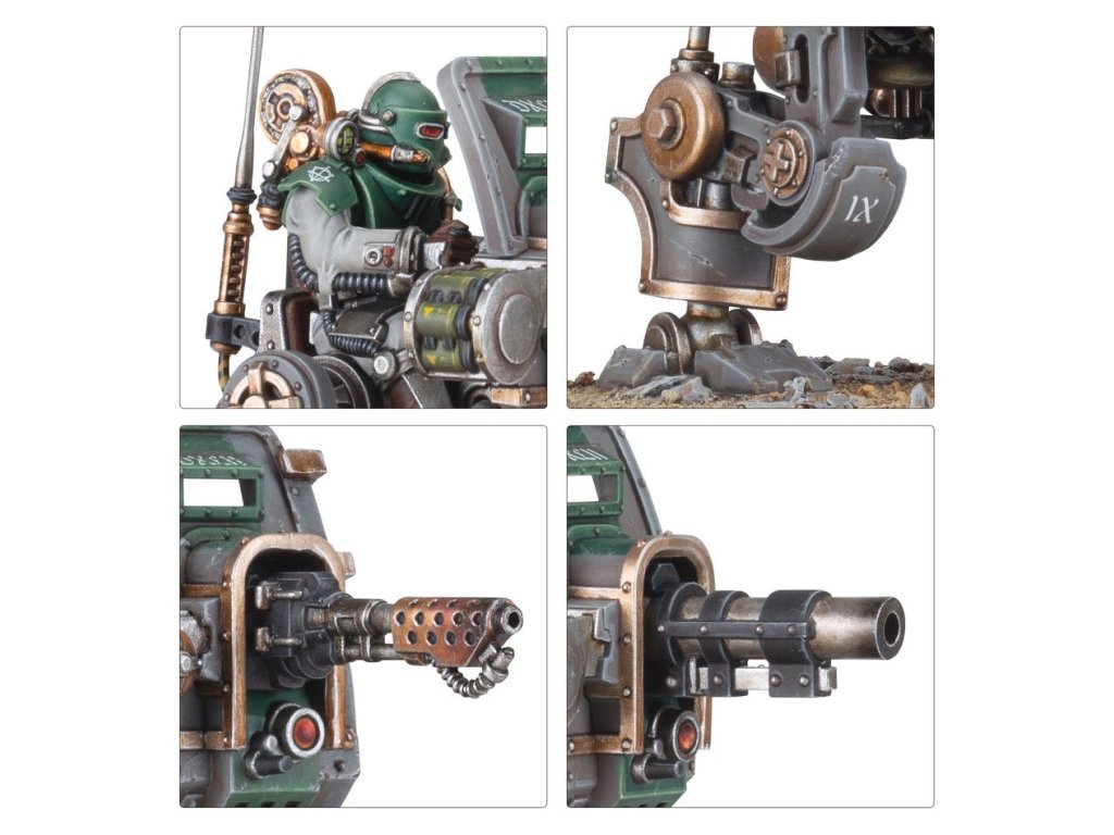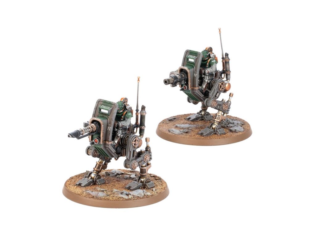 The Hermes Light Sentinels can each be armed with either a multi-laser or a Hermes grenade launcher. They can alternatively be built as Hermes Veletaris Sentinels with additional armour and your choice of heavy flamer or a volkite caliver.