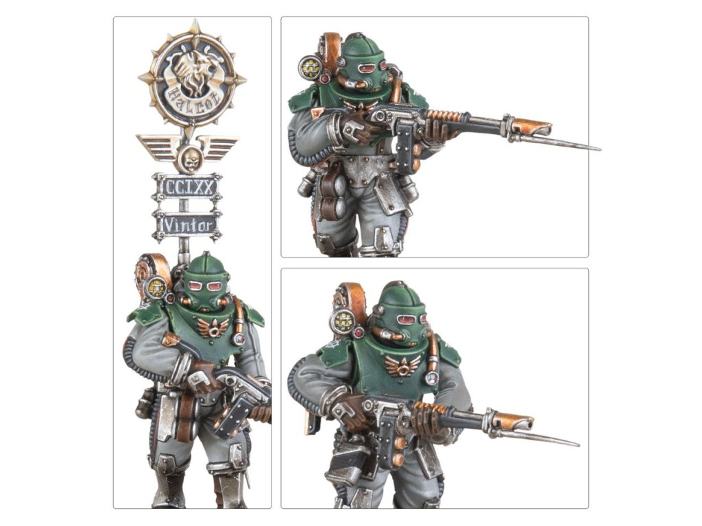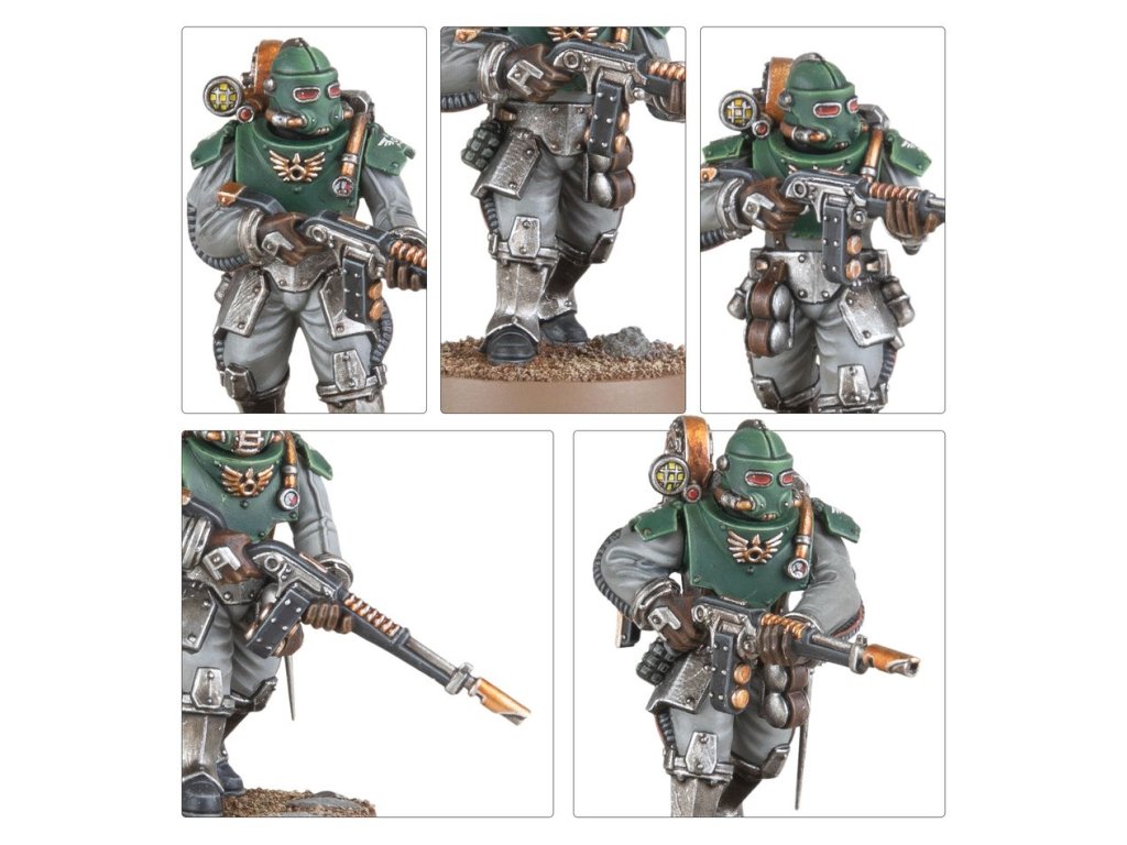 Miniatury v této sadě se snadno upravují. Miniatury sekce laserových pušek lze použít jako jednu velkou jednotku nebo dvě menší s 10 pomocnými jednotkami, každá s vlastním volitelným pomocným seržantem, pomocnou jednotkou s voxovým blokováním a pomocnou jednotkou s pomocnou vexillou. Seržanti mohou být vyzbrojeni dle vašeho výběru laserovou pistolí, blasterovou pistolí, jehlovou pistolí, volkitovou serpentou, plazmovou pistolí nebo ručním plamenometem a silovou pěstí, silovým mečem nebo charnabalskou šavlí. Laserovou pušku každé pomocné jednotky lze vylepšit volitelným bajonetem.