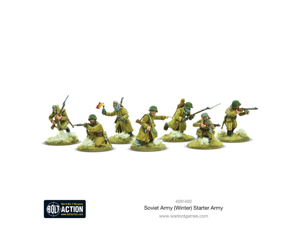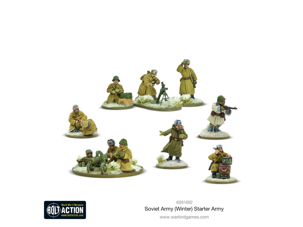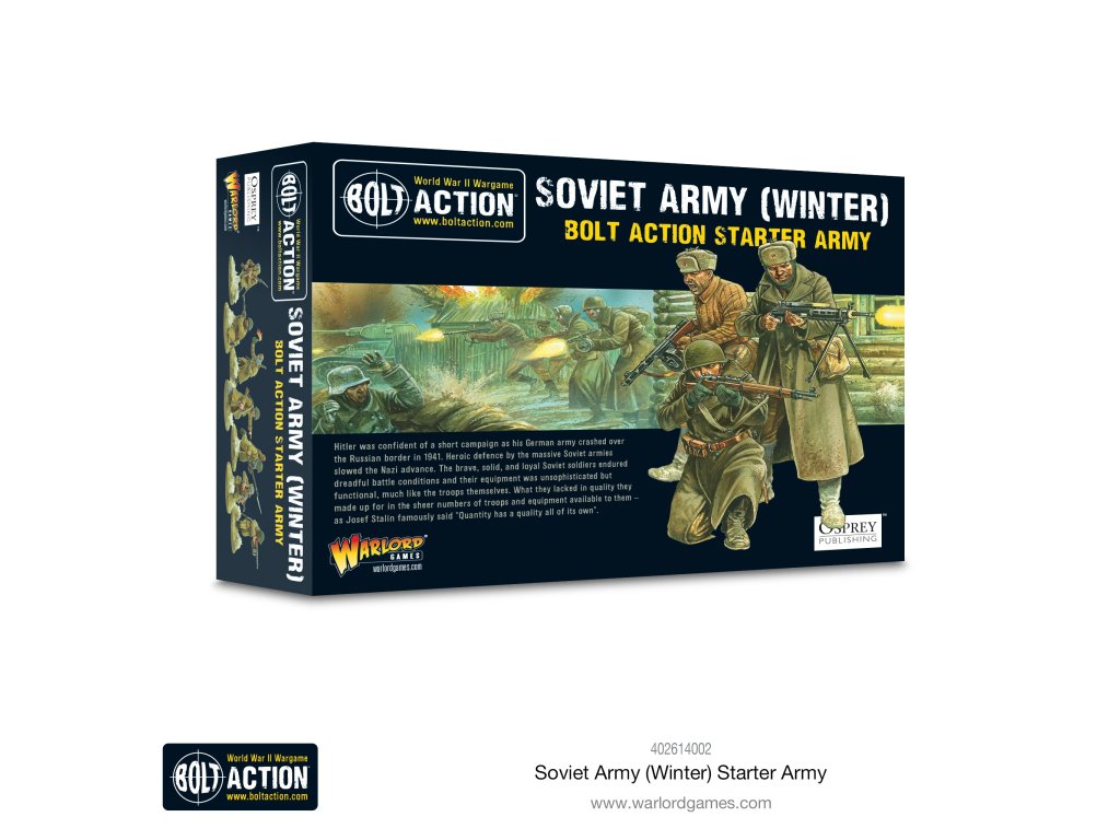 Tato počáteční armáda pro Bolt Action obsahuje dostatek vojáků, aby vytvořila početnou počáteční armádu pro obranu vlasti v kruté zimě, která sužovala východní frontu. Třísné boje ve Finsku daly Rudé armádě tvrdou lekci, kde tisíce jejích mužů padly za oběť omrzlinám. Chladivá výstroj, která byla později vydána, byla teplá a pohodlná, často polstrovaná nebo prošívaná a němečtí vojáci, kteří se třásli v tenkých kabátech, jí velmi záviděli.