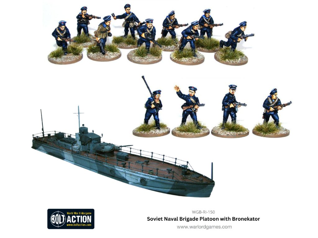 Tato speciální nabídka vám dává velitelskou skupinu sovětské námořní brigády, tři balíčky sovětské námořní brigády a pryskyřičný Bronekator!