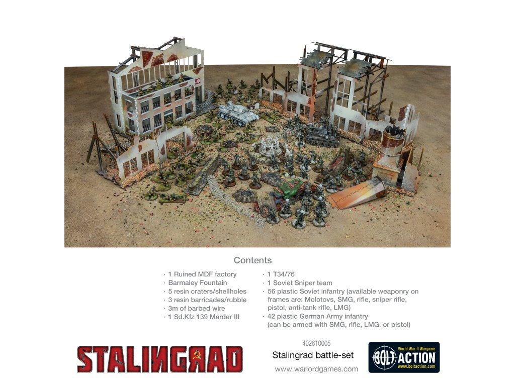 Kromě fantastické nové knihy o kampani Stalingrad máme pro vaši sbírku úžasnou bitevní sadu – tato sada je plná miniatur a exkluzivního terénu z MDF, který vyrobili naši přátelé ze Sarissa Precision.