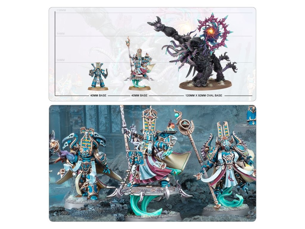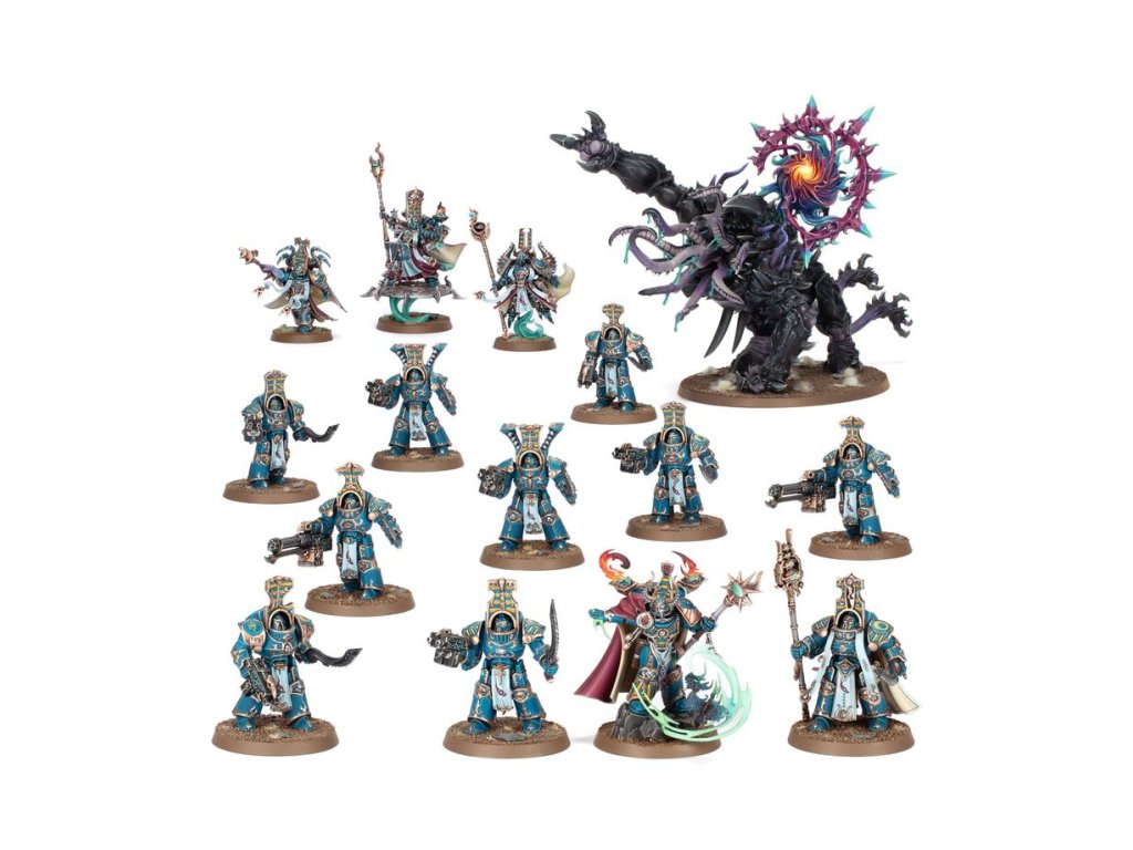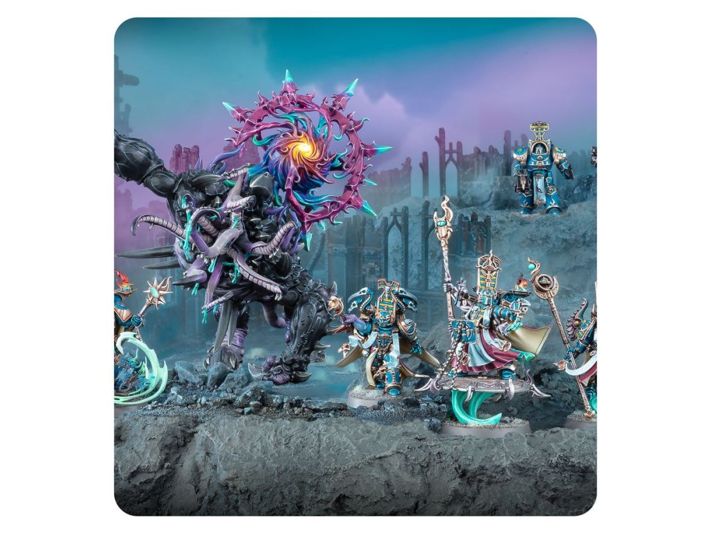 This packed boxed set is ideal for starting a new Thousand Sons collection – or expanding an existing army – to unleash in games of Warhammer 40,000, and save money compared to buying the kits separately. The force is led by an Infernal Master, a powerful sorcerer who can summon daemons and cast debilitating magic, and a trio of Exalted Sorcerers, enough to spread around and ensure there's nowhere to hide from your psychic domination. Two units of Scarab Occult Terminators – elite heavy infantry wielding potent ensorcelled weapons – make up the core of the force. They are supported by a Mutalith Vortex Beast, a horribly mutated creature blessed by Tzeentch, capable of blasting the enemy's sanity before tearing them apart with huge clawed limbs.