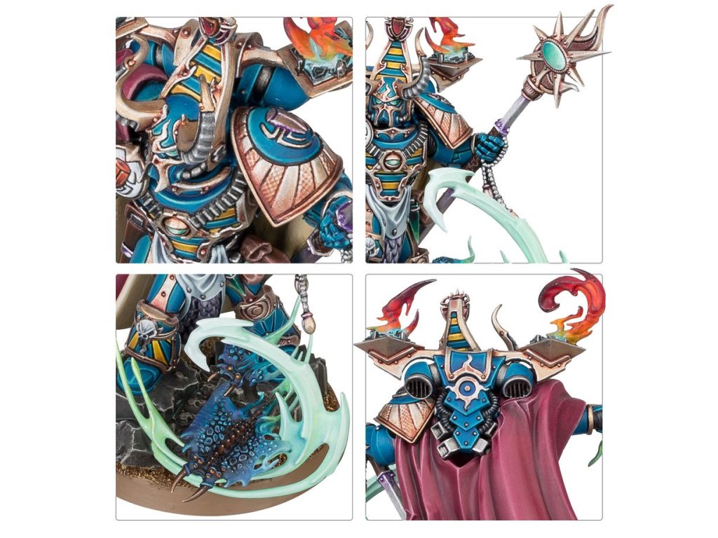 The Thousand Sons are masters of the Warp and infernal sorcery. In battle, the Scarab Occult Terminators march forward in eerie lockstep, spewing tainted fire and cutting down enemies foolish enough to test them. Led by Sorcerers who wield their powers to annihilate foes with gouts of warpflame, they are often accompanied by bizarre, mutated, and tentacled beasts.