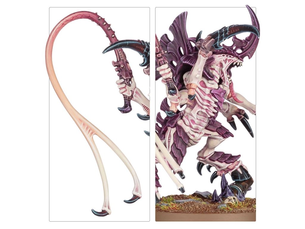 Tyranid Primes are the apex of the Tyranid Warrior strain, leader-beasts boasting fearsome intellect and synaptic capacity. Adapted to their role, some carry long, sinuous lash whips to ensnare their prey.