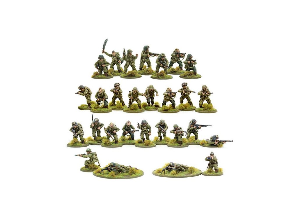 Tato cenově dostupná krabicová sada vám poskytne vše, co potřebujete k zahájení hry s elitními silami americké výsadkové jednotky. Vyzbrojeni uniformami výsadkářů M-43, zavedenými v roce 1944, jsou ideální pro akce během operace Market Garden, osvobození kontinentální Evropy, překročení Rýna nebo závěrečný vpád do samotného Německa!