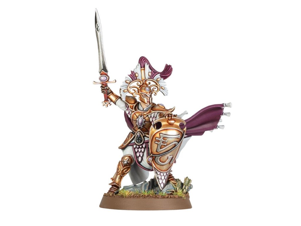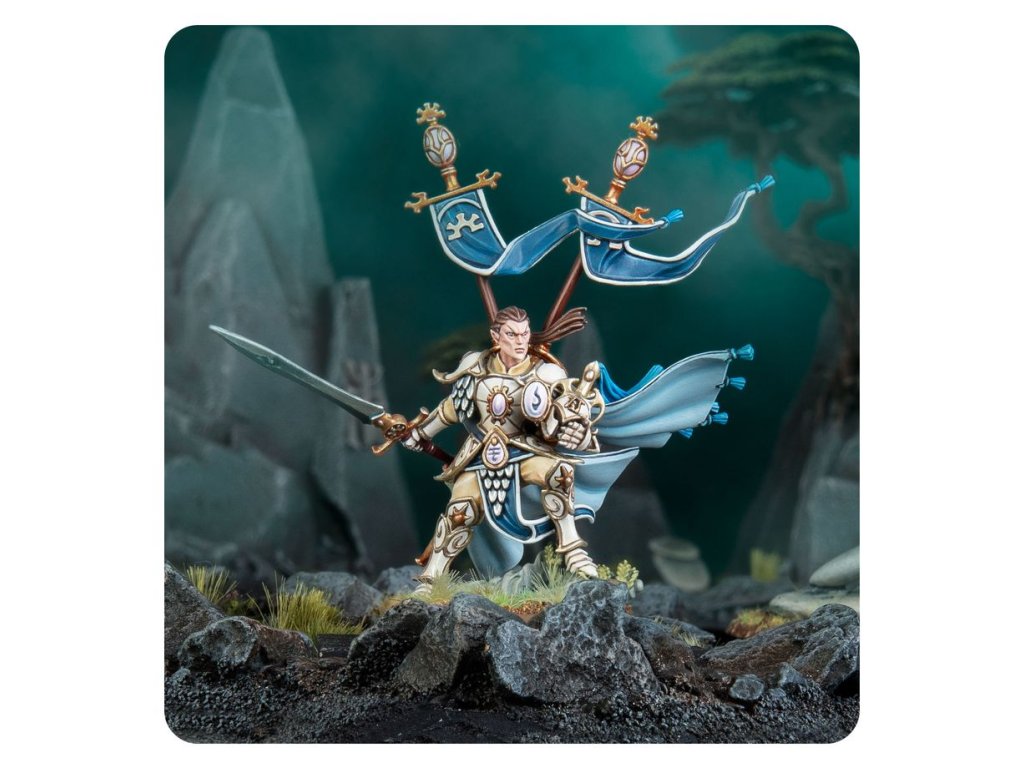 Vanari Lord Regents are a powerful and inspiring presence amidst the ranks of the Lumineth infantry. Under their leadership, Auralan Wardens adopt near-unbreakable shield walls to impede the enemy, blunting their assault in readiness for a swift counter-attack.