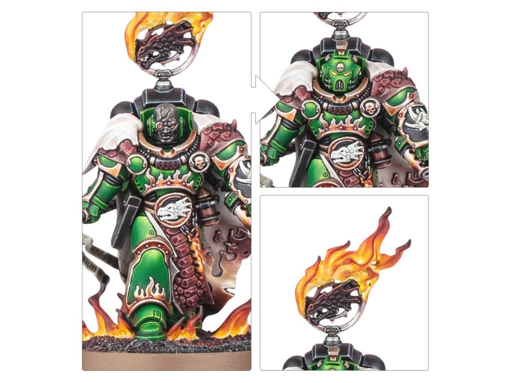 The miniature is packed with Salamanders details, including Chapter iconography, finely wrought flames on the armour, and lizard scale. There is also a choice of two different heads – one with a helmet and one bare. Vulkan is an ideal addition to your Salamanders collection and excels at unleashing the fury of the forge upon the battlefield.