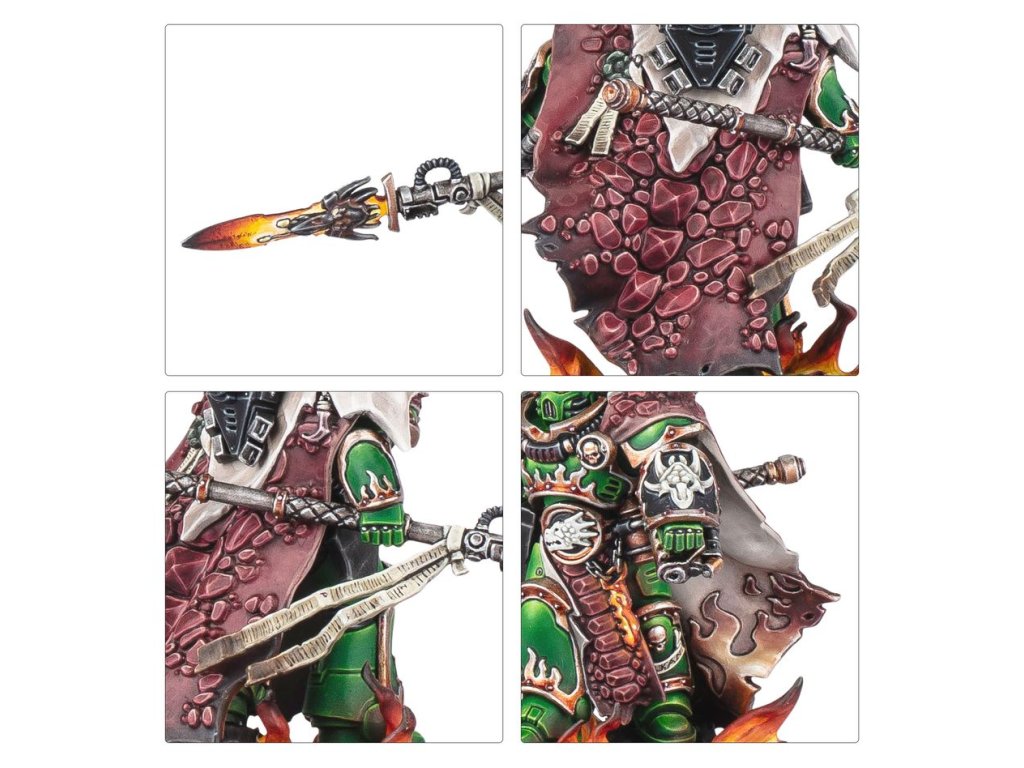 Miniatura je plná detailů Salamandrů, včetně ikonografie Kapituly, jemně vytesaných plamenů na brnění a ještěřích šupin. K dispozici je také výběr ze dvou různých hlav – jedné s helmou a jedné bez helmy. Vulkan je ideálním doplňkem vaší sbírky Salamandrů a vyniká v rozpoutání zuřivosti kovárny na bojišti.