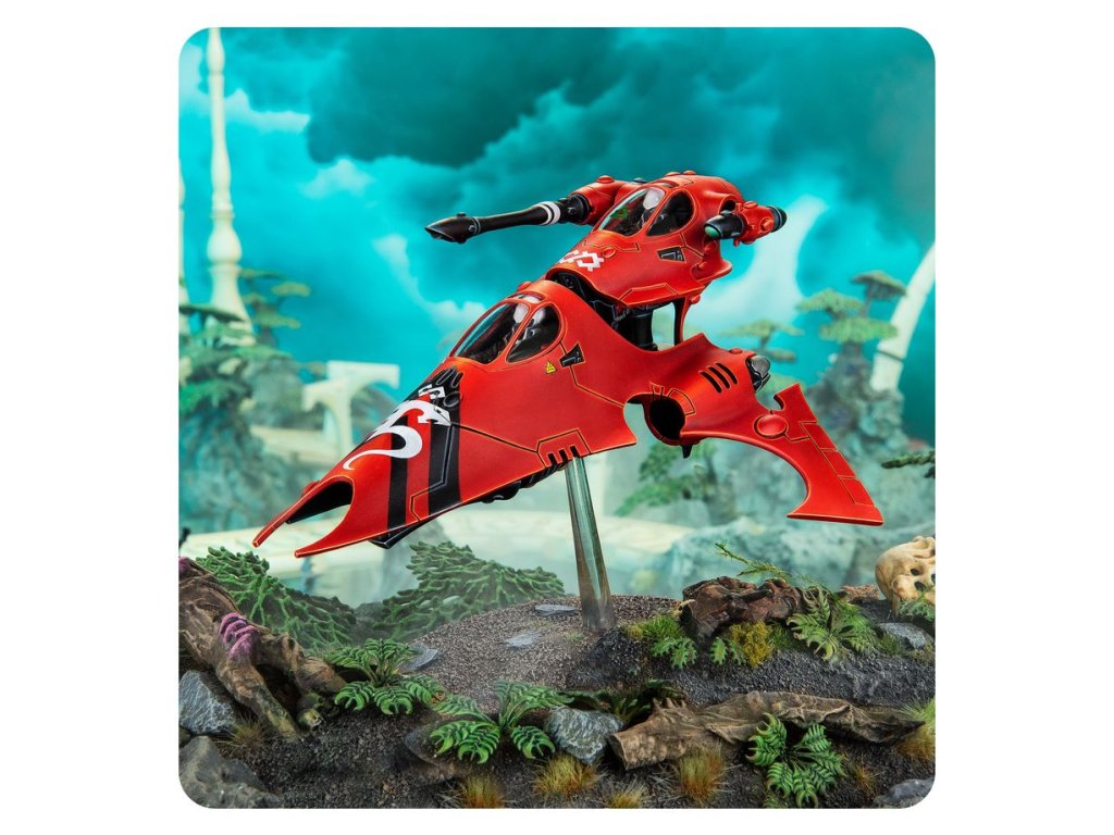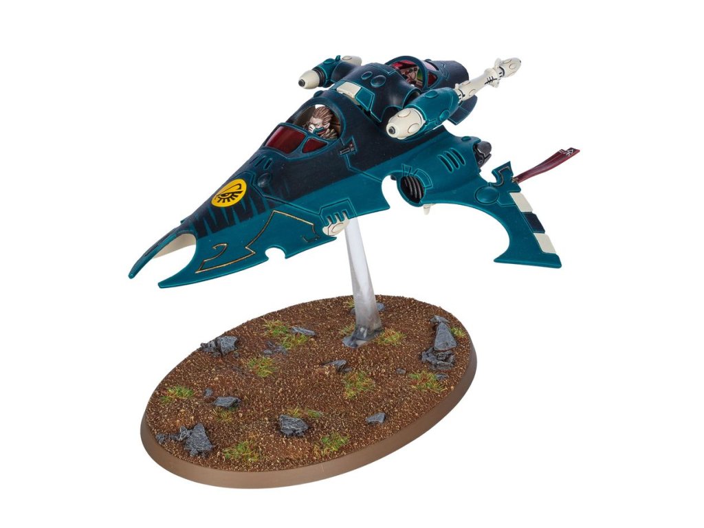 Vypers are sleek skimmers offering a perfect compromise between the speed of a jetbike and the heavier armament of a grav-tank. Well-drilled Vyper squadrons move gracefully as one at breakneck speeds, as their seated gunners blast at the vulnerable rear armour of tanks or harass the flanks of infantry squads.
