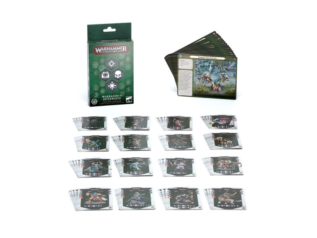 Tato krabice shromažďuje karty bojovníků a karty válečných svitků pro 16 válečných band ve hře Warhammer Underworlds, což vám umožňuje uvolnit stávající miniatury z vaší sbírky v labyrintu Zlobivého lesa.