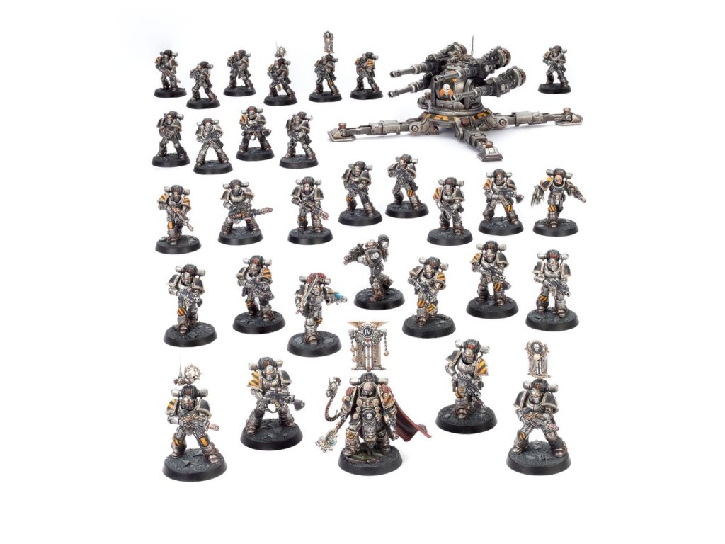 Tato krabice obsahuje 50 vícedílných plastových miniatur:– 1x Saturnin Praetor– 1x Centurion v silovém brnění MKII– 1x Saturnin Dreadnought– 1x Araknae Quad Accelerator Platform– 6x Saturnin Terminators– 40x Legionáři v silovém brnění MKII– 36x Vylepšení zbraní Disintegrátor