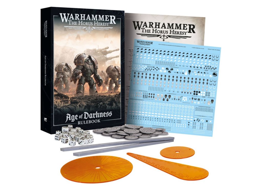 The Warhammer: The Horus Heresy – Age of Darkness Rulebook is available separately. The miniatures in this boxed set will be available separately at a later date.