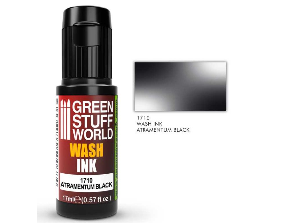 Wash inkoust Atramentum Black, nejlepší alternativa k Nuln Oil, je typ barvy speciálně vyvinutý pro zvýraznění detailů a stínování miniaturních modelů nebo jiných malých povrchů. Vyznačuje se tekutou konzistencí a vysokou koncentrací pigmentu, což mu umožňuje usazovat se v prohlubních a štěrbinách miniatury a vytvářet přirozeně vypadající stíny a hloubku pouze s jednou aplikací. Wash inkousty běžně používají hobbyisté a malíři miniatur k dodání hloubky, definice a realismu svým malovaným modelům.
