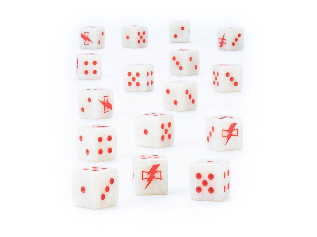Toto je sada 16 šestistěnných kostek s hranatými hranami pro použití ve hrách Warhammer 40,000 s tématem Bílých jizev. Jsou odlity z perleťově bílého akrylového plastu s červenými inkoustovými značkami a měří 16 mm podél každé hrany. Čísla 1-5 jsou tradičně perforovaná a každá šestka je zdobena ikonou blesku Bílých jizev.