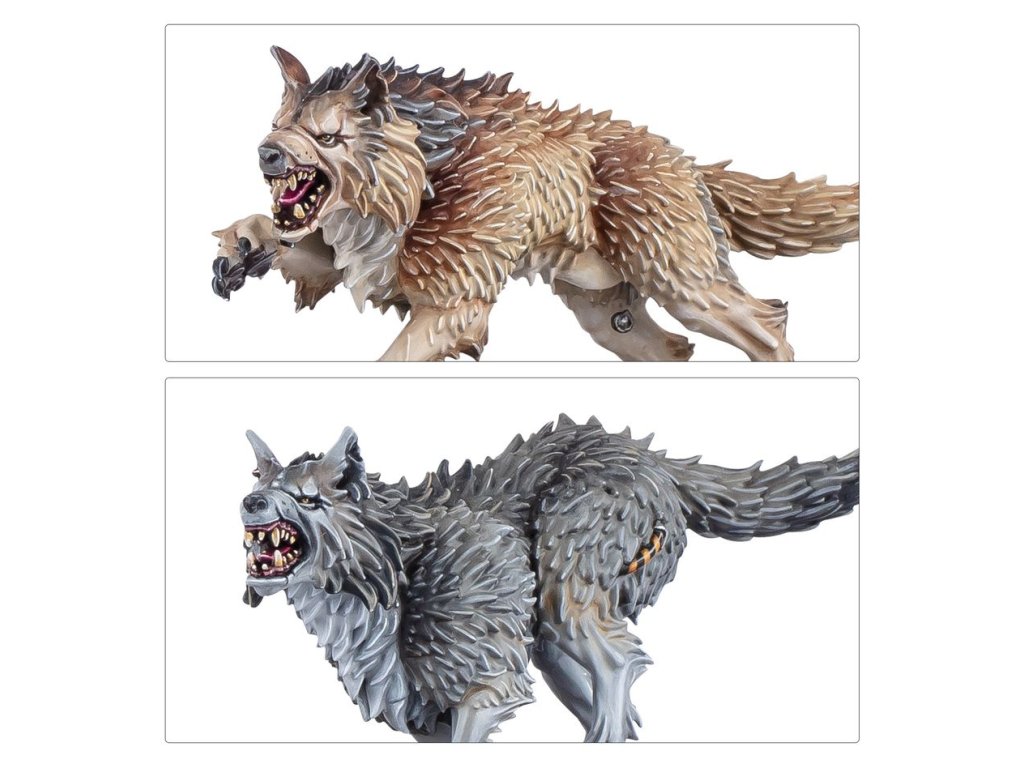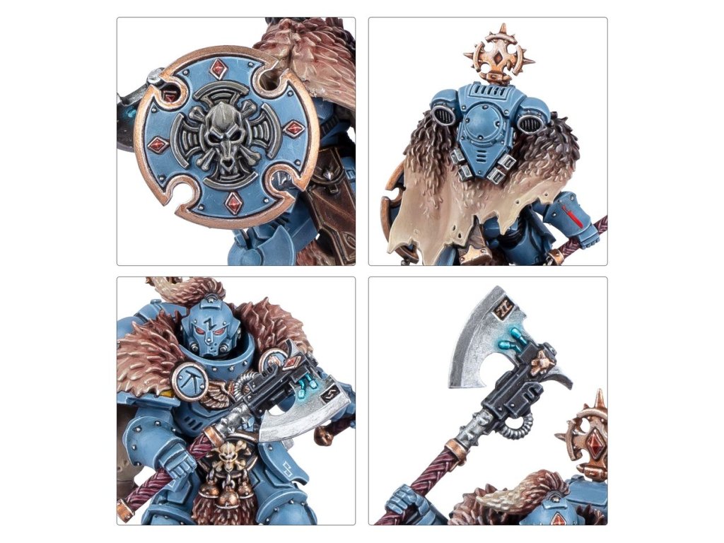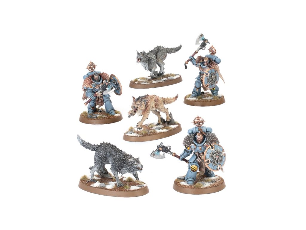 Wolf Guard Headtakers break through enemy lines to hunt down commanders and champions. In this task, they are aided by packs of Fenrisian hunting wolves – cunning beasts that scatter enemy formations and harry prey, enabling their handlers to close in and dispense the Allfather’s justice.