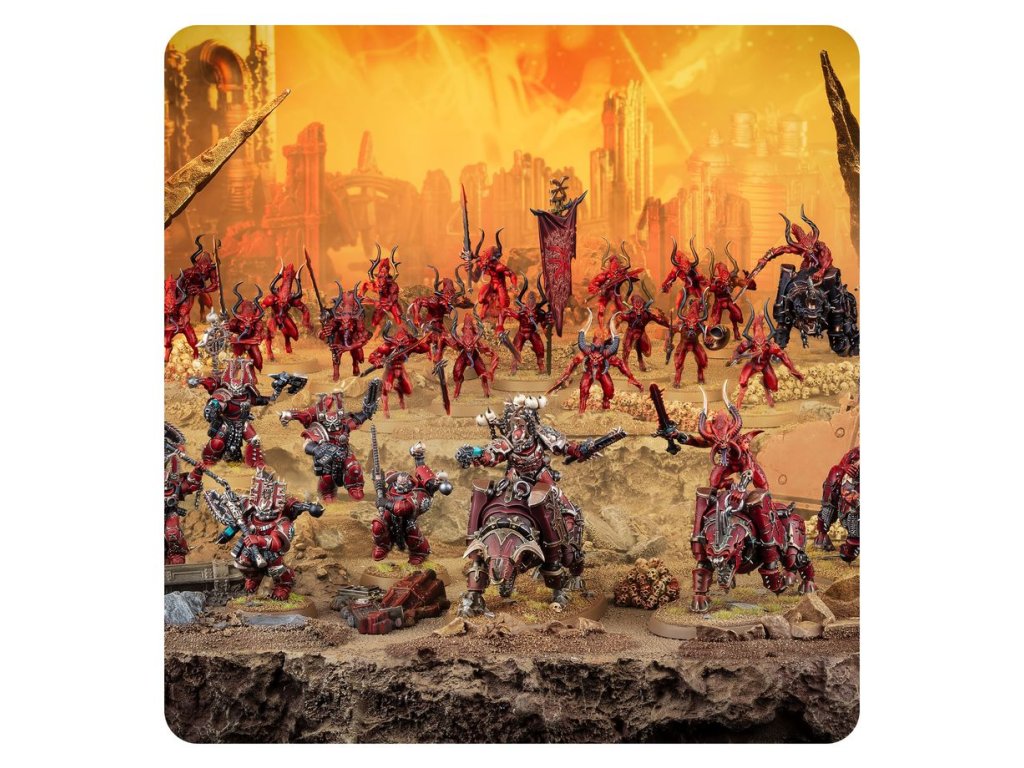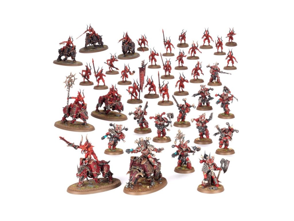 This packed boxed set is ideal for starting a new World Eaters collection – or expanding an existing army – to unleash in games of Warhammer 40,000, and save money compared to buying the kits separately. Ostensibly led by a Lord on a Juggernaut, whose primary role is to charge into battle first and start claiming heads, the bulk of the force is composed of Bloodletters and Khorne Berzerkers, aggressive infantry to flood the battlefield with lunatic killers. Bloodcrushers, hard-hitting and fast daemonic cavalry, support the army by taking on the toughest targets, while a Master of Executions adds considerable hitting power to your infantry charge.